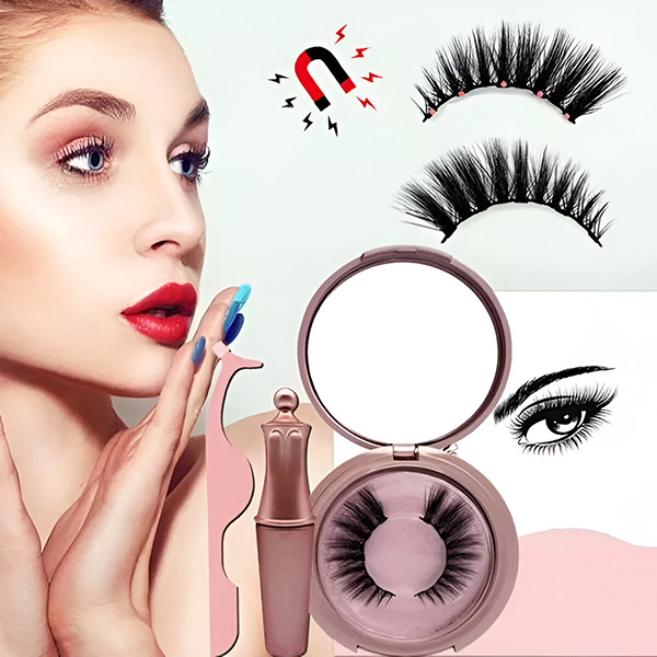 1x Комплект Магнитна Очна Линия и Мигли: 5 чифта магнитни мигли, 1 магнитна течна очна линия, 1 пинсета и 1 кутийка с огледало.