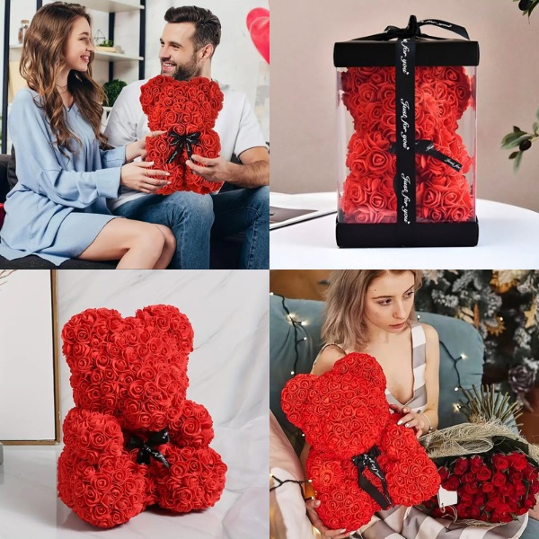 🎁 Изненадайте я с романтично мече, изработено от неувяхващи рози.